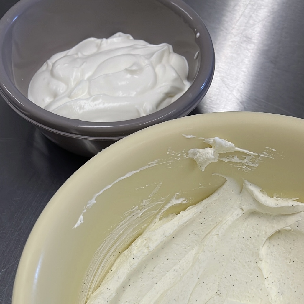 3.Smetanový krém s cremé fraiche: (120g / vrstva + zbytek na dekoraci)
